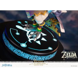 Statuette en PVC mesurant environ 27 cm avec socle décor lumineux, en emballage boîte-fenêtre.